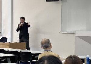 全体講演では、高等学校社会科担当の大久保諭先生が「教師の魅力」をテーマに講演を行いました。続く少人数制の情報交換会では、卒業生が学生の質問に丁寧に答え、これまでの実践や経験を共有しました。学生にとって、教員のやりがいや現場の実情を知る貴重な機会となりました。