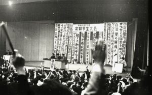 当時の写真部員が記録したモノクロの写真は大学祭、学内が騒然とした大学闘争の様子、恩師、今は全て姿を消した建物など懐かしさあふれるものでした。